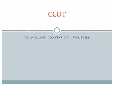 CCOT CHANGE AND CONTINUITY OVER TIME Purpose: To evaluate your ability to analyze historical changes and continuities that have shaped events, social, political ... – PowerPoint PPT presentation